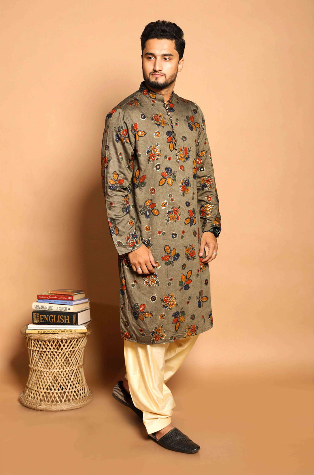 Men's Fade Moss Green Kurta | Cotton Fabric | Festive & Occasion Wear