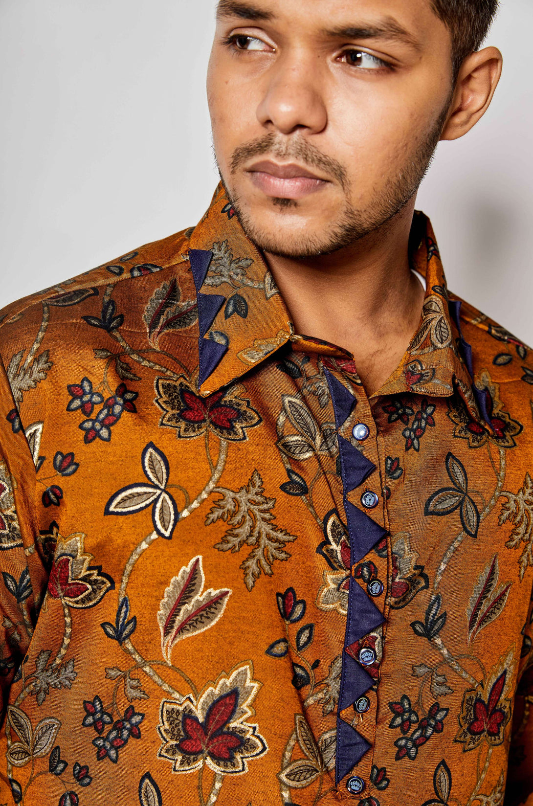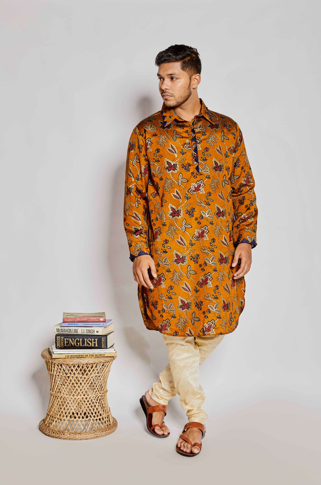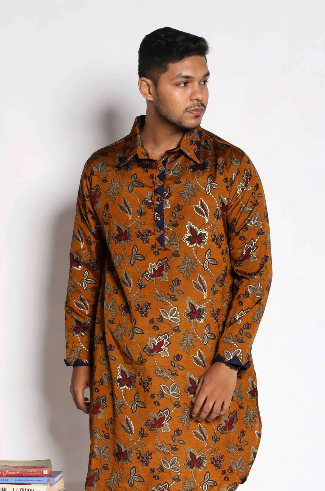 Men's Stylish Bronze Floral Print Kurta | Cotton Fabric | Festive & Occasion Wear