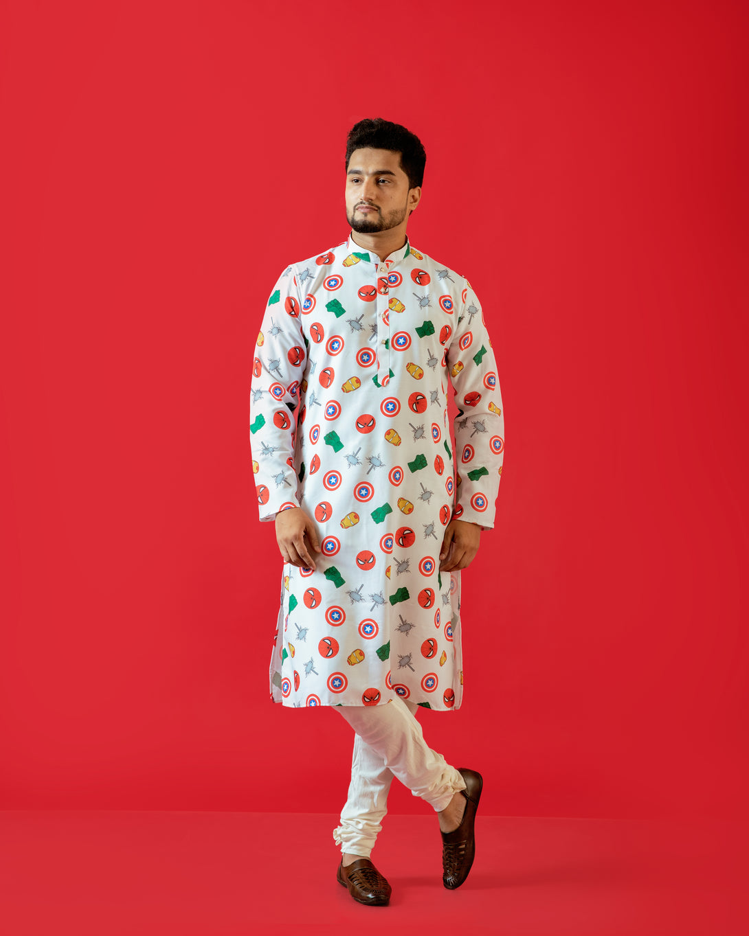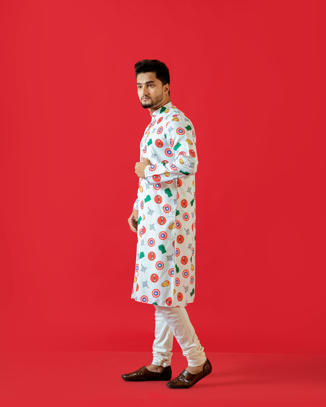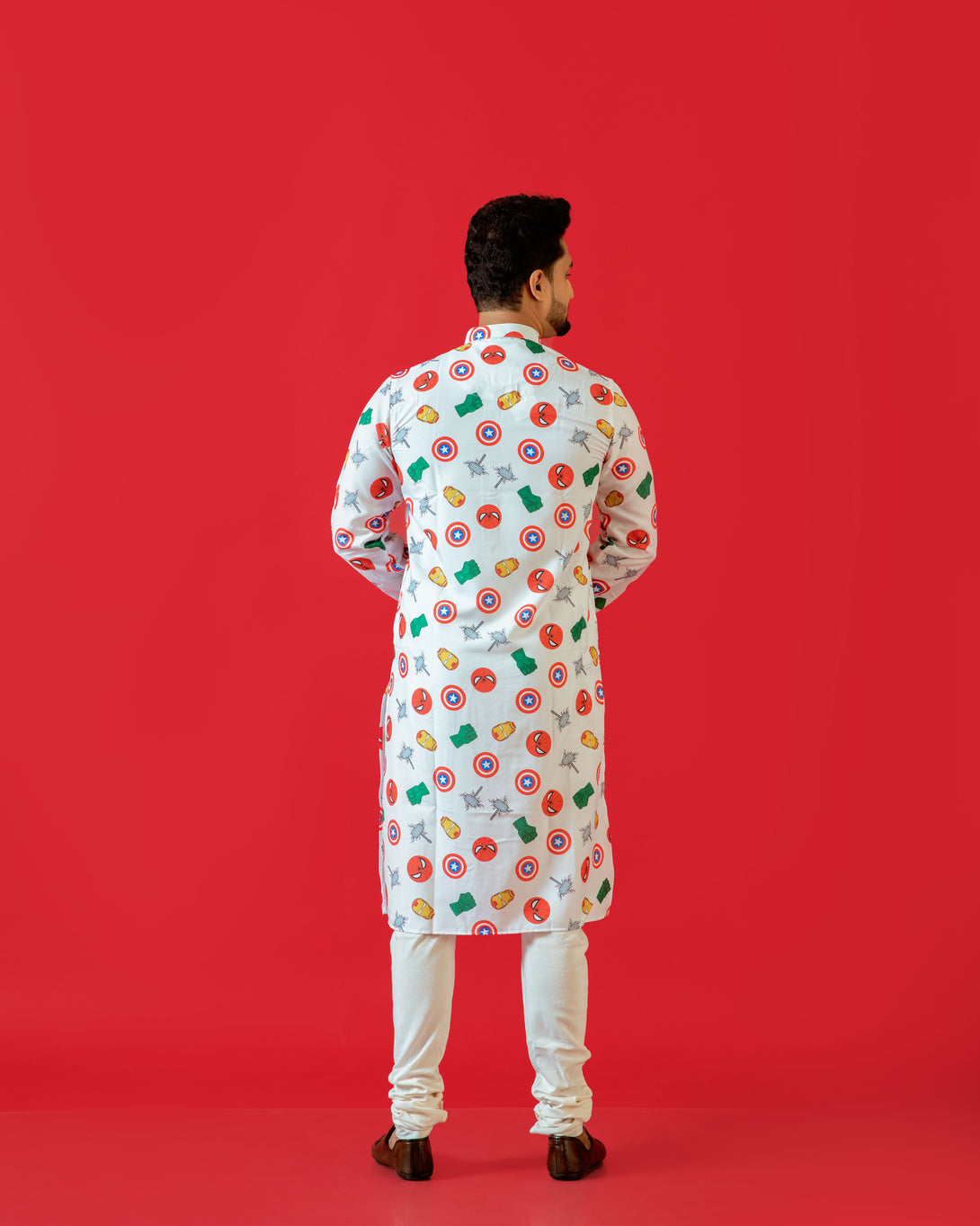 Men's White Quirky Printed Kurta | Cotton Fabric | Casual & Festive Wear
