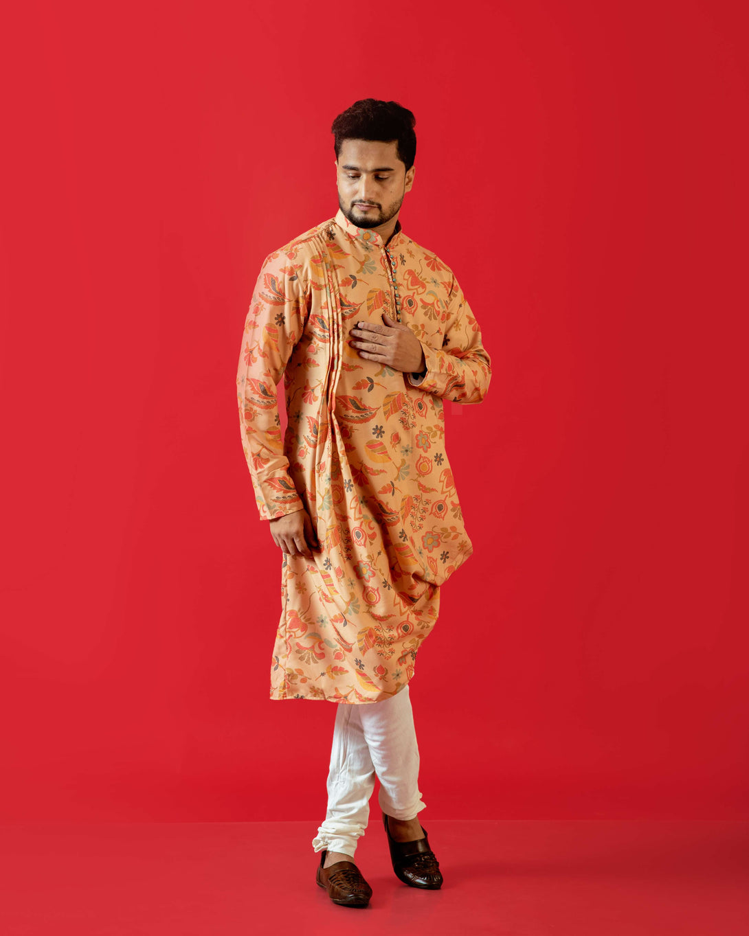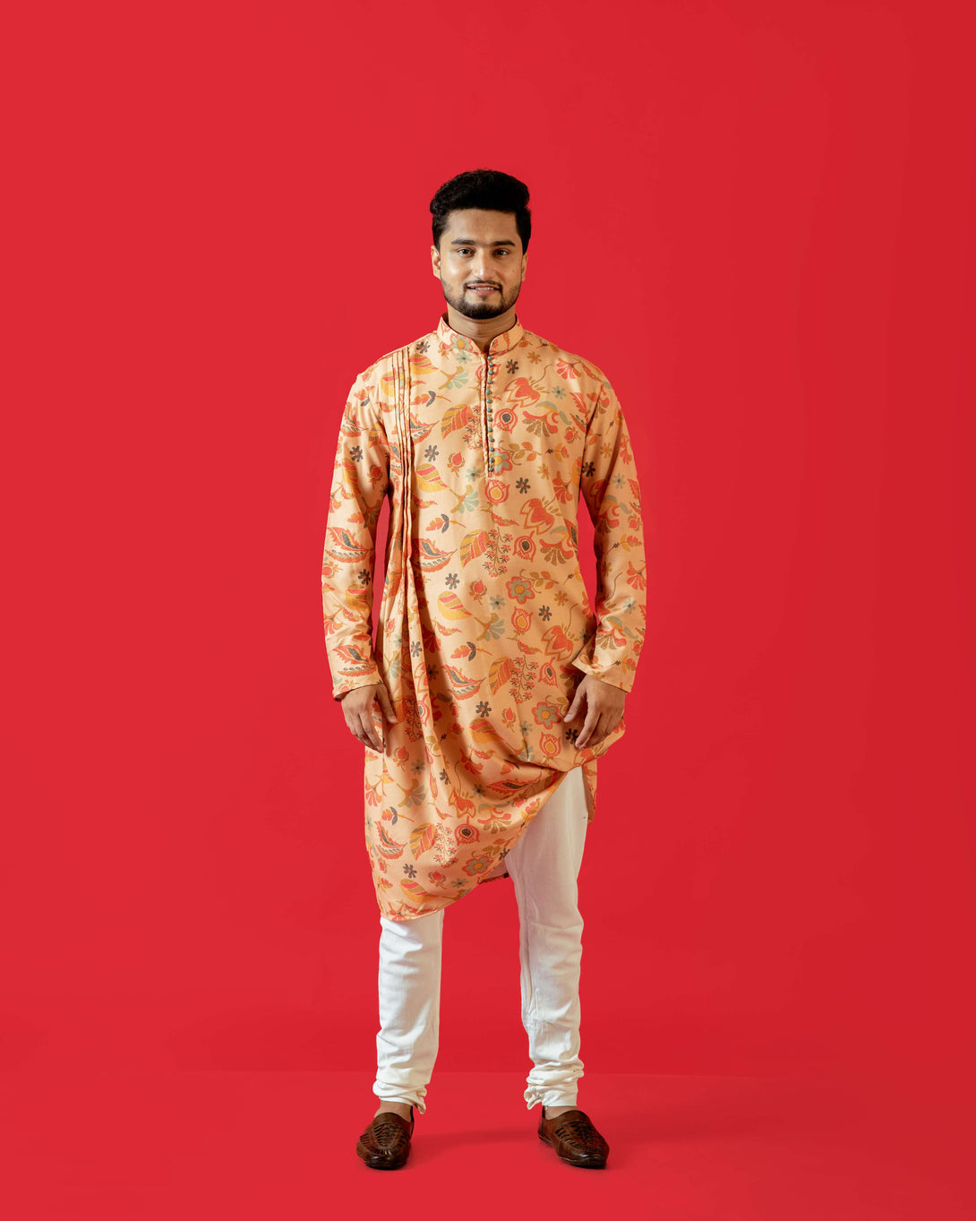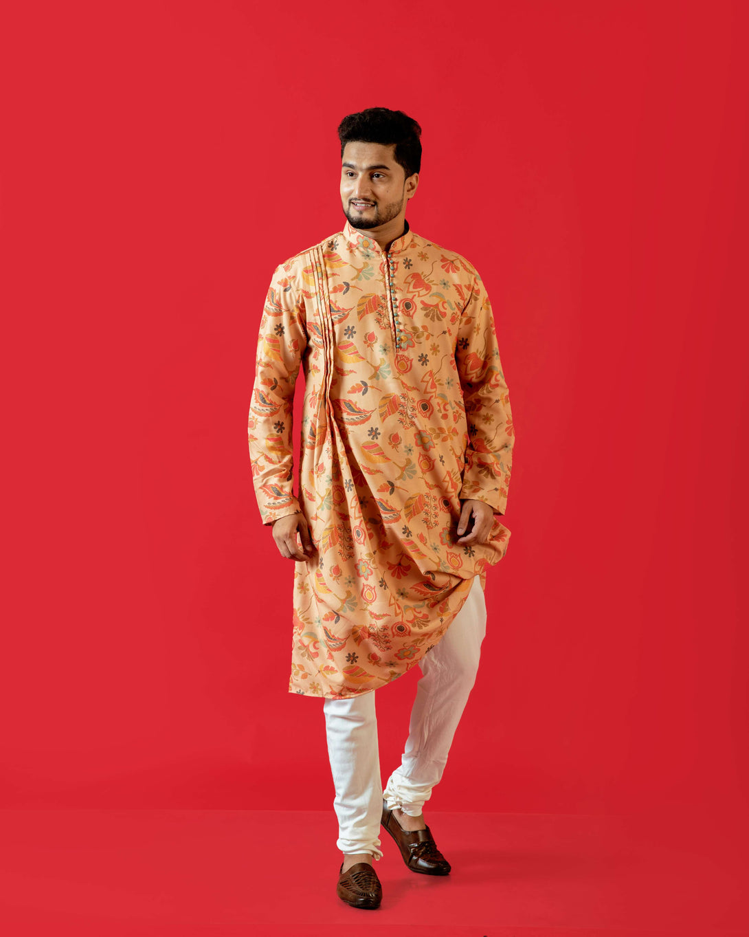 Men's Pastel Orange Kurta | Cotton Fabric | Festive & Casual Wear