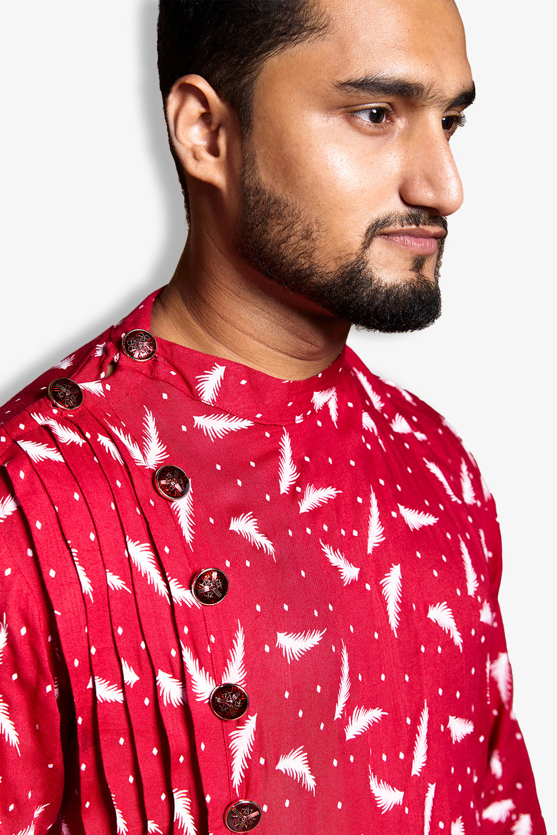 - DESIGN FEATURES: Stylish Red & White kurta with mandarin collar and full sleeves, asymmetrical kurta with side buttons