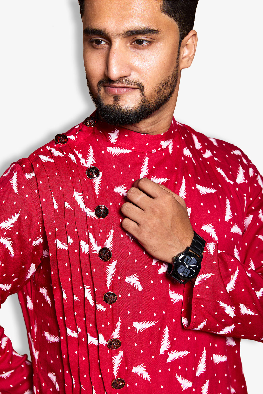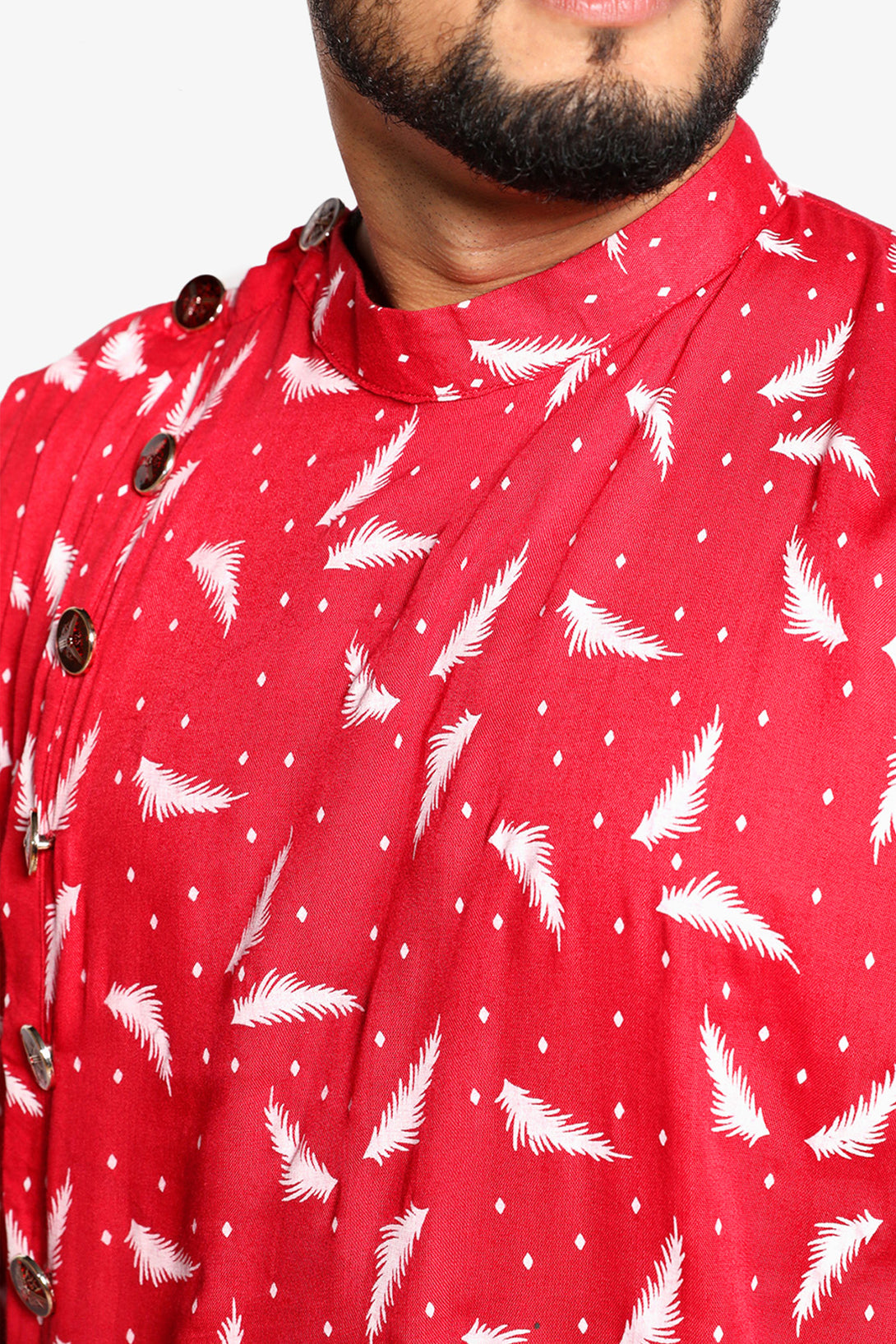 Men's Red & White Kurta | Cotton Fabric | Festive & Casual Wear