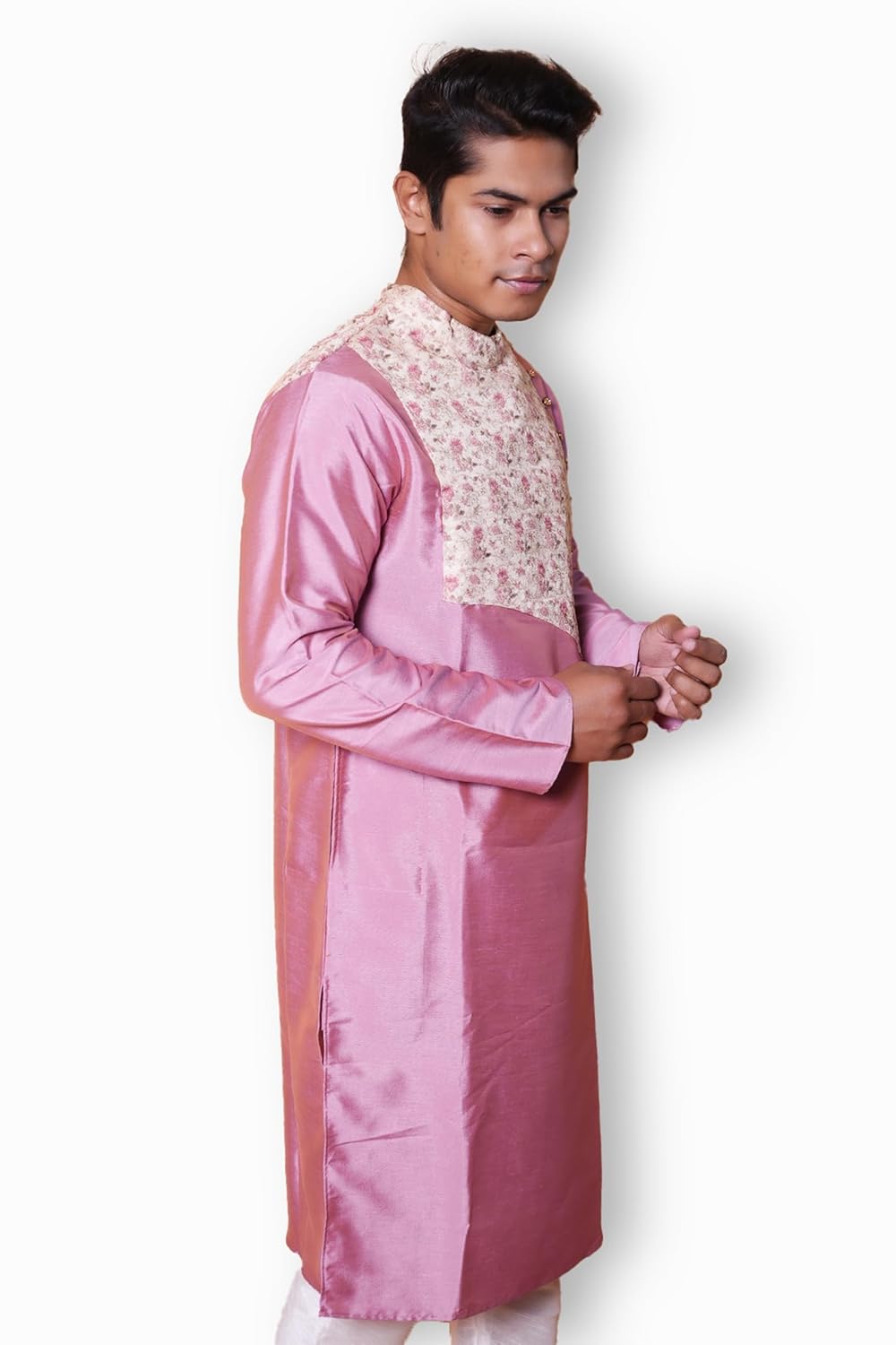 Men's Festive Lilac Pink Kurta | Art Silk Fabric | Festive Wear