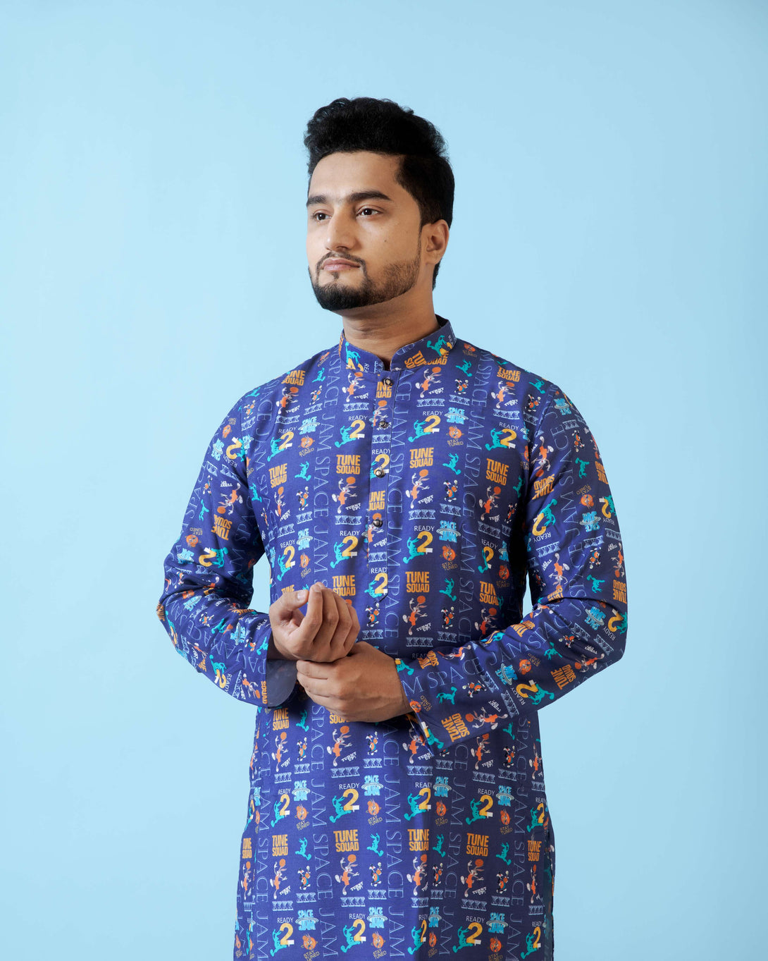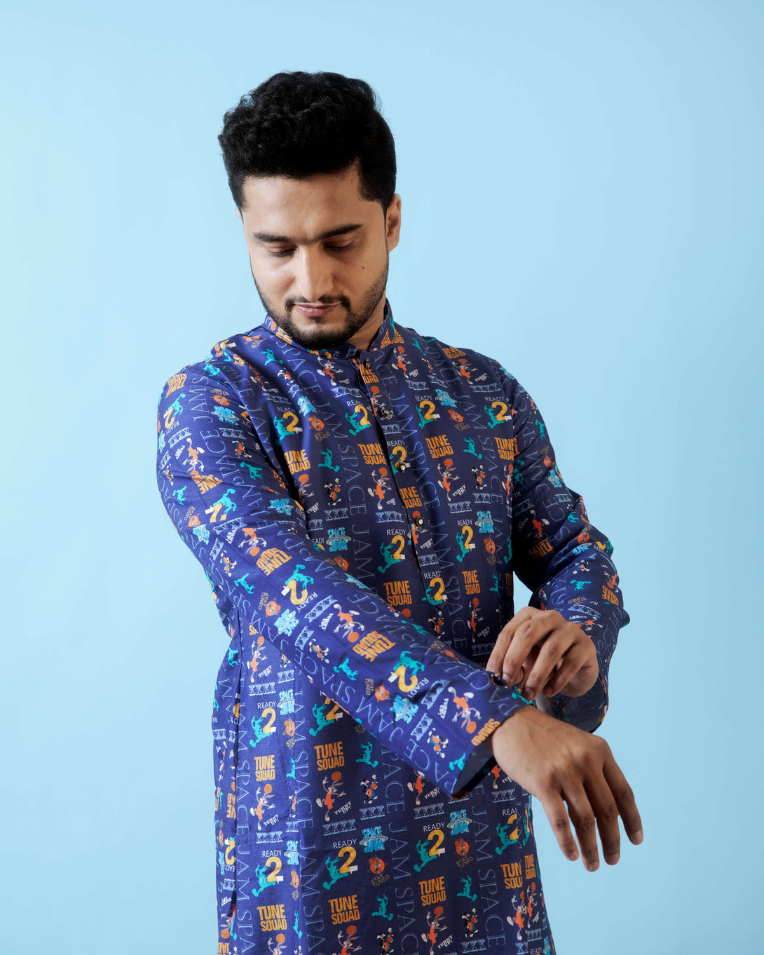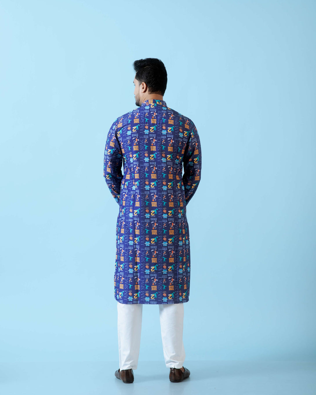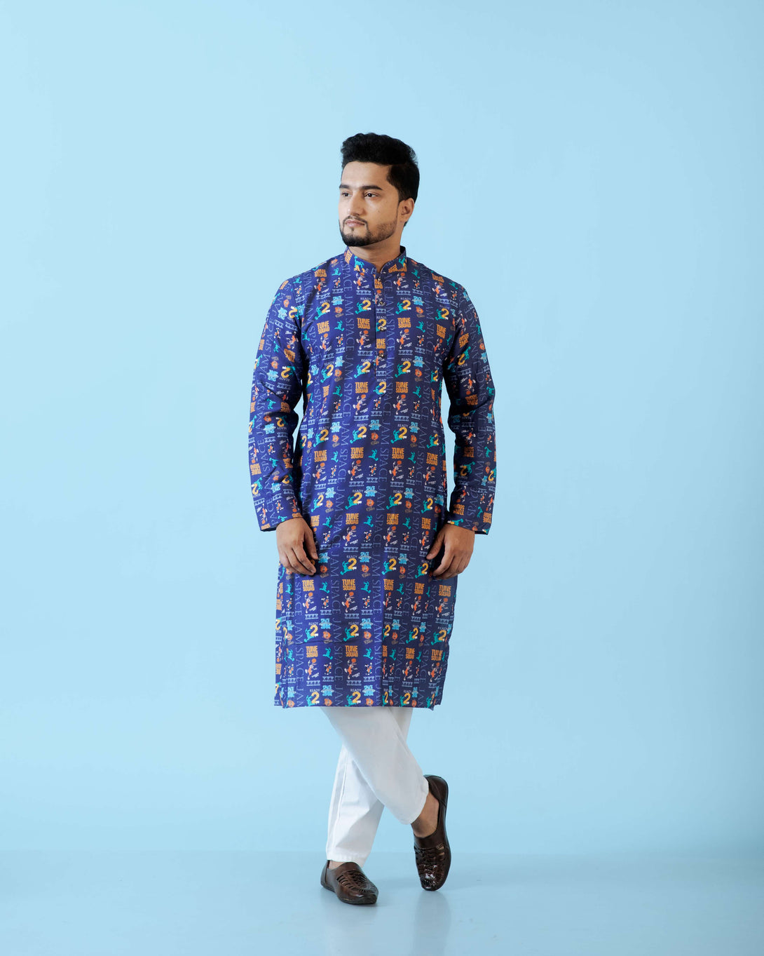 Men's Blue Quirky Printed Kurta | Cotton Fabric | Casual & Festive Wear