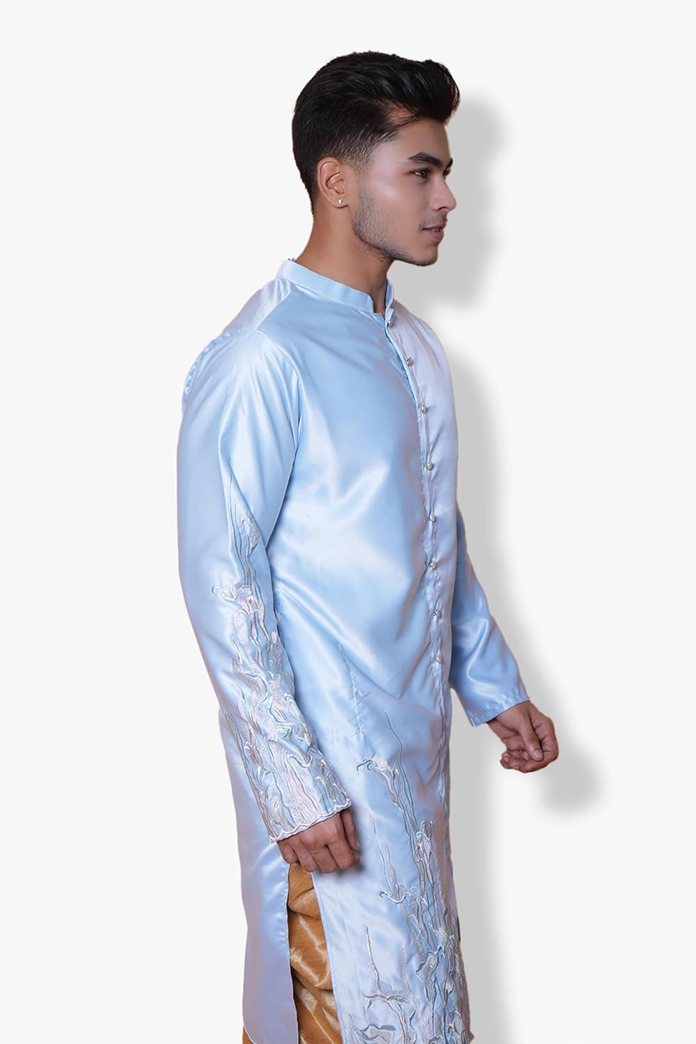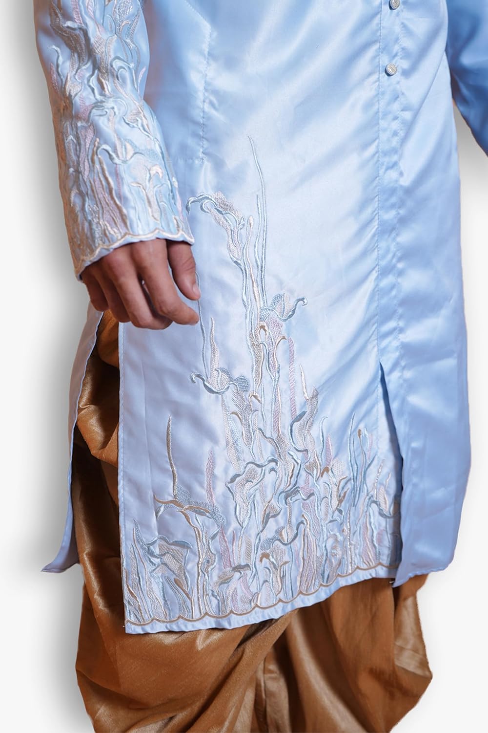 Men's Light Blue Sherwani | Premium Satin-Silk Fabric | Embroidered | Occasion and Wedding Wear