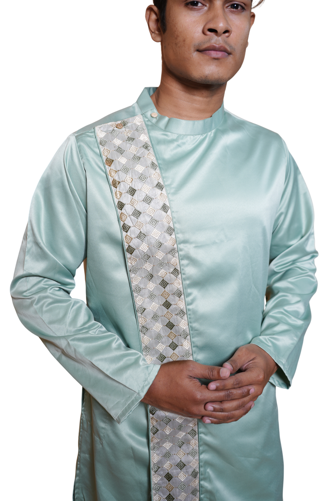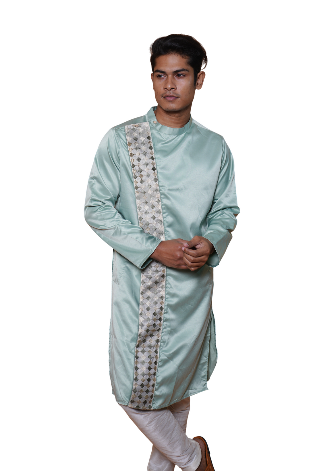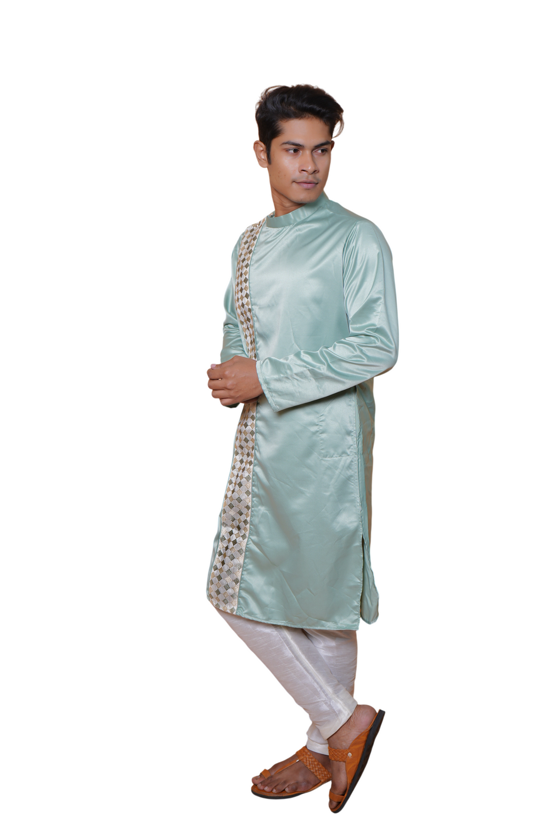 Men's Light Blue Kurta | Satin-Silk Fabric | Embroidered Detailing | Occasion Wear