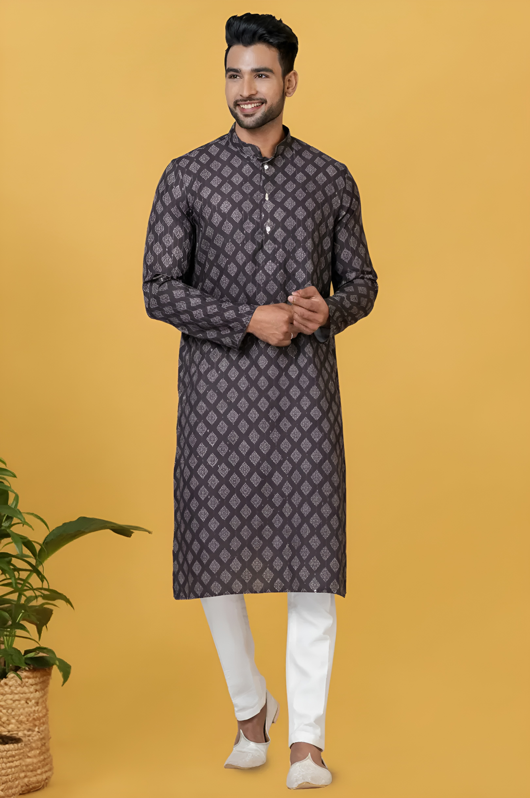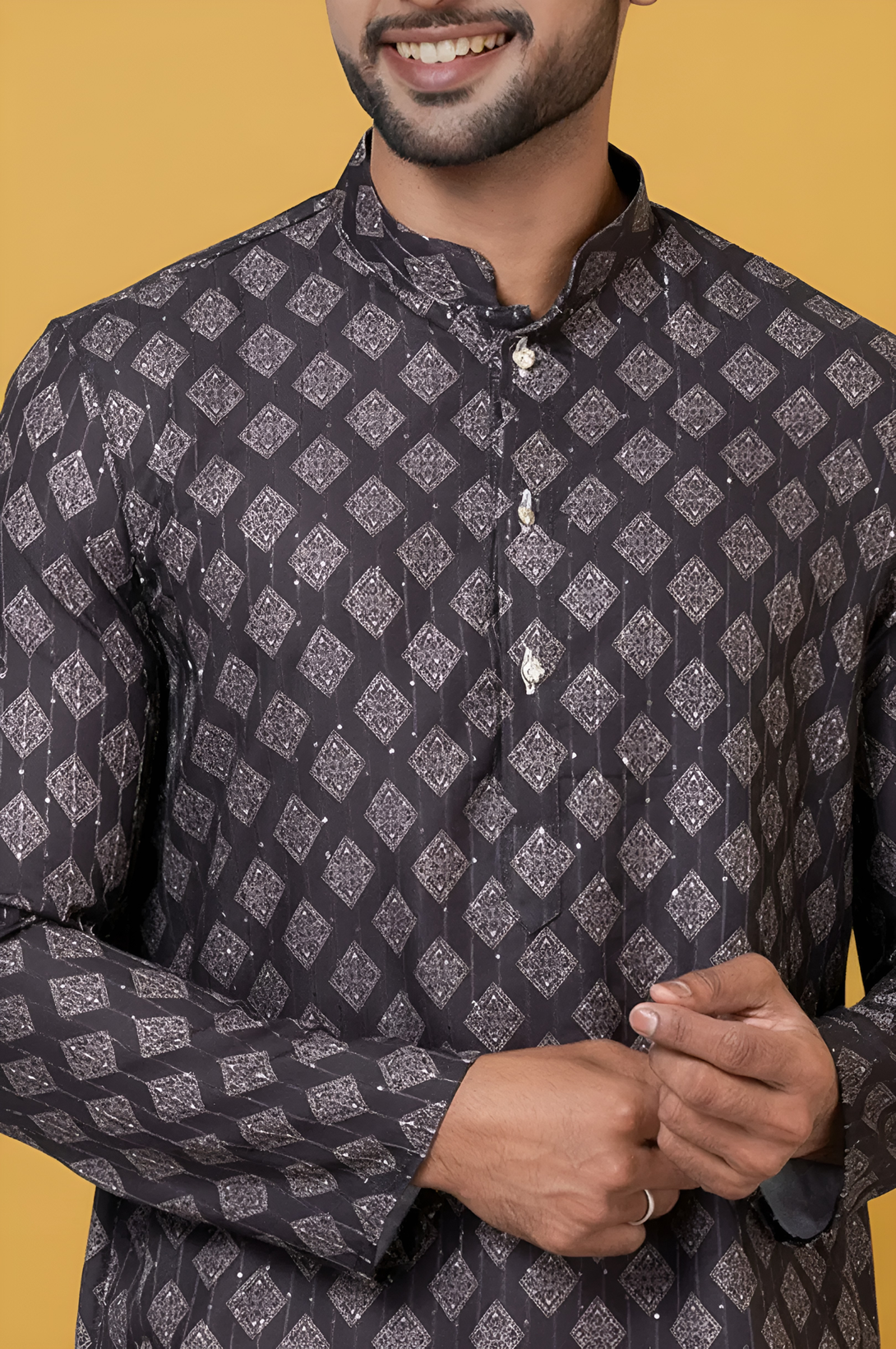 Men’s Black Printed Kurta | Cotton Fabric | Ethnic & Casual Wear
