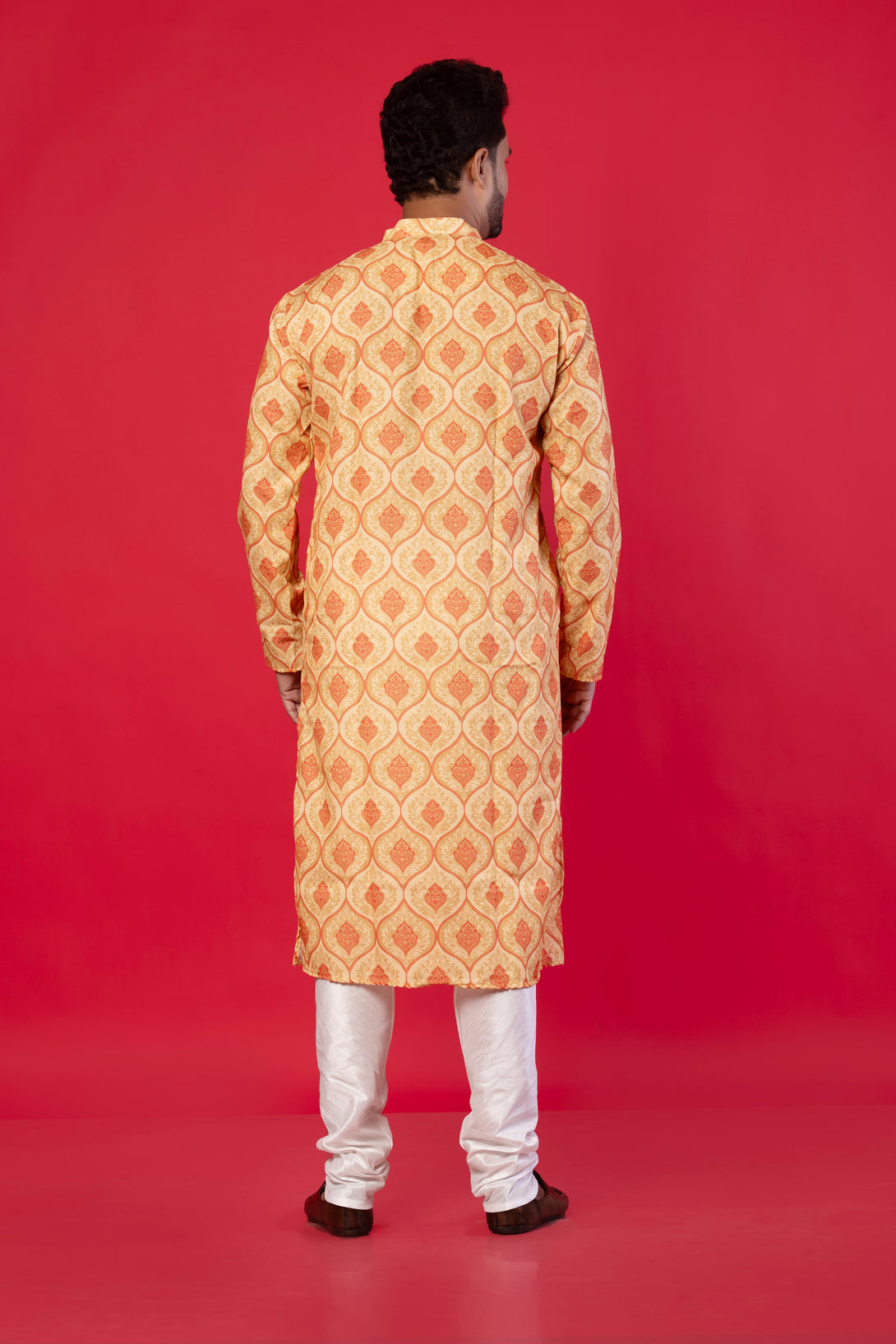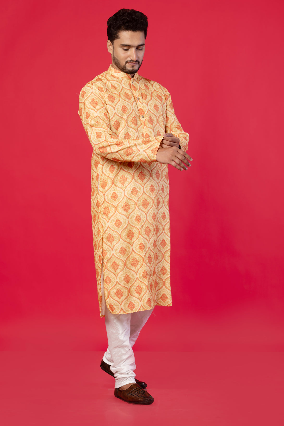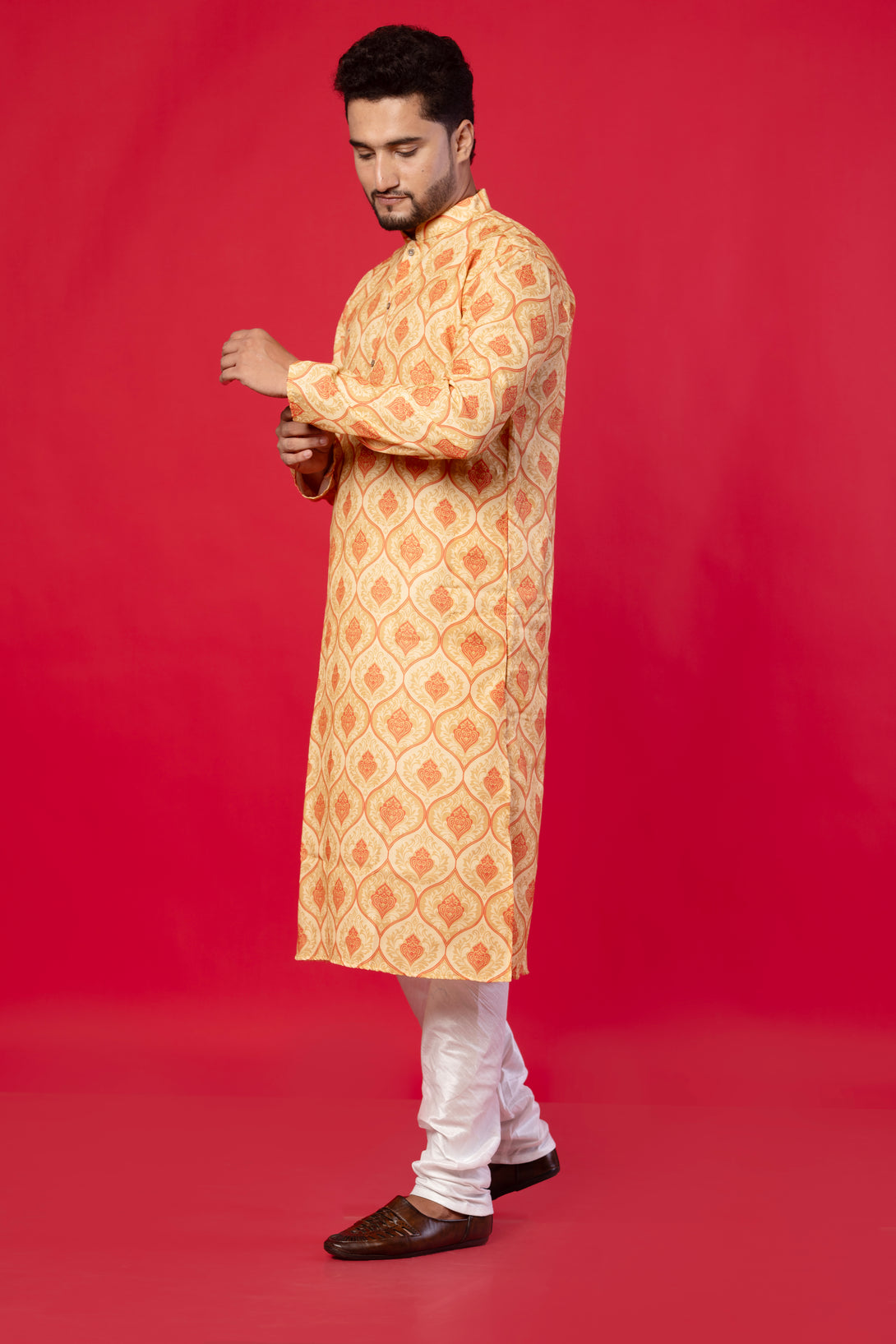 Men’s Red & Yellow Printed Kurta | Cotton Fabric | Festive & Occasional Wear