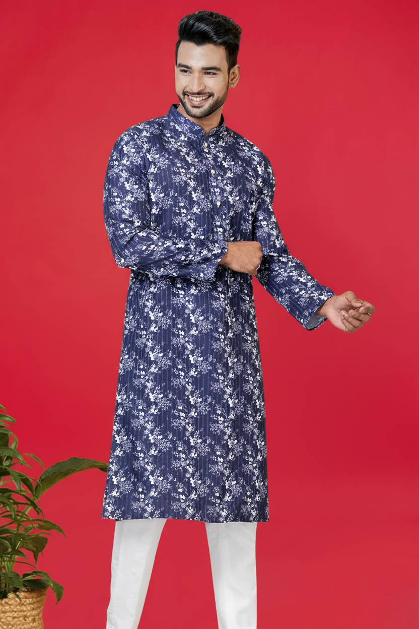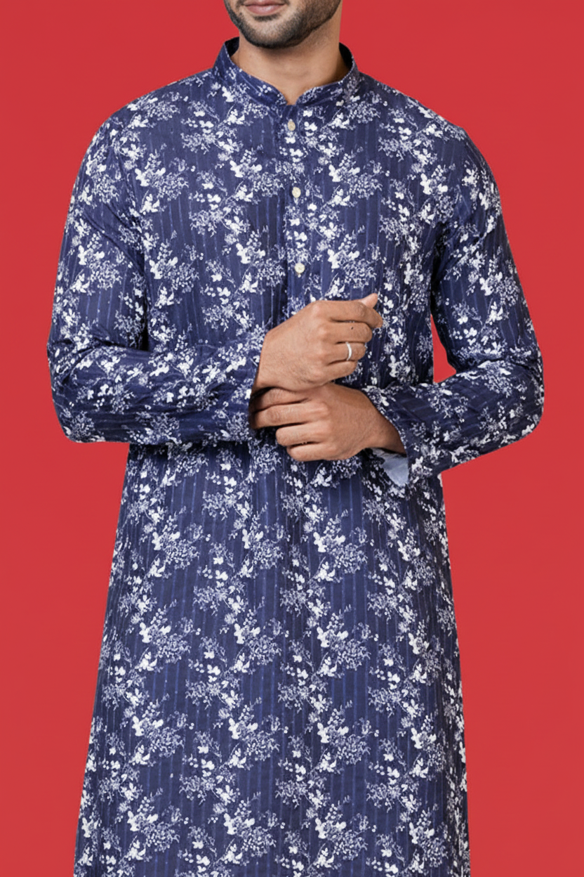 Men’s Indigo Printed Kurta | Cotton Fabric | Ethnic & Casual Wear