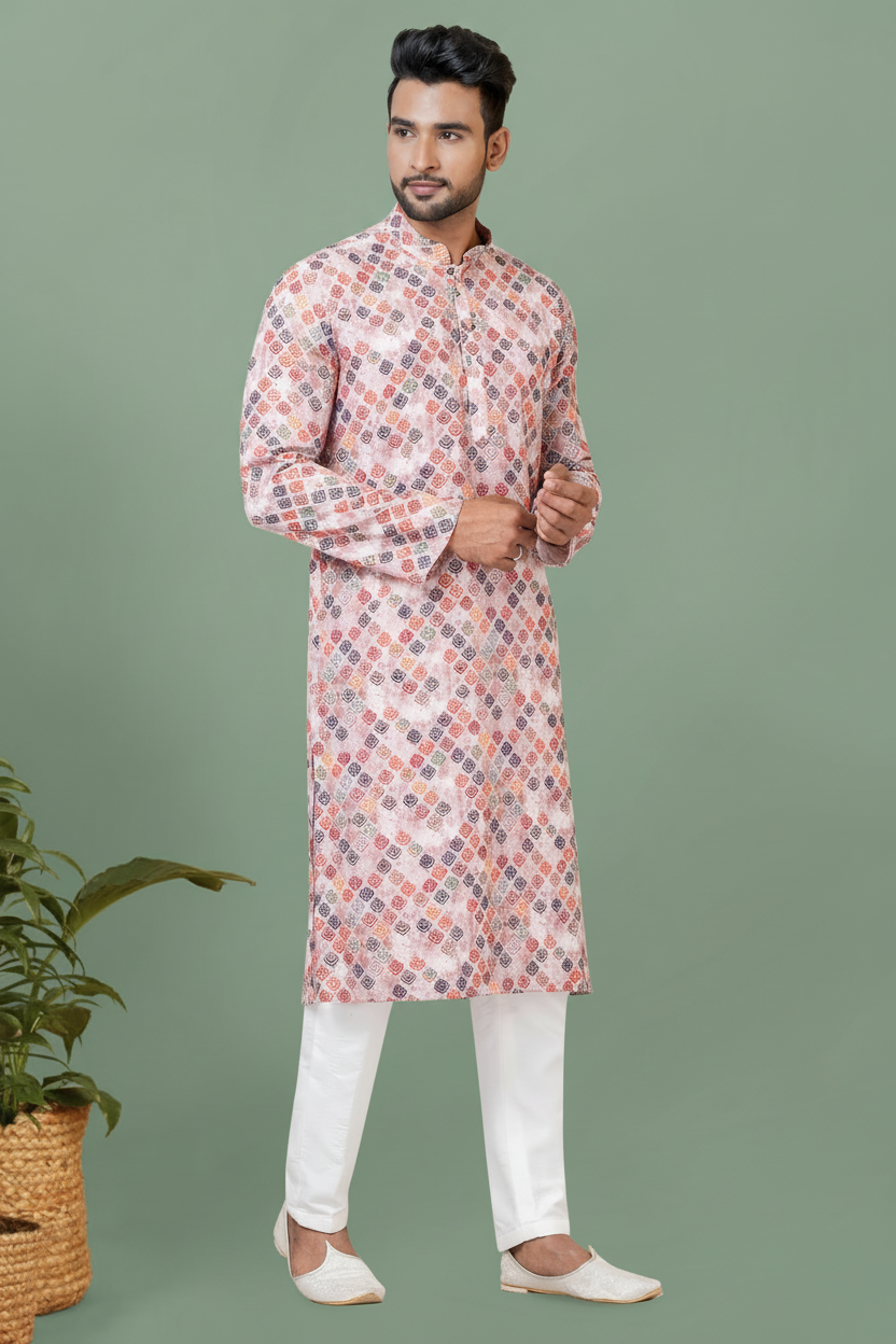 Men’s Multicoloured Printed Kurta | Cotton Fabric | Ethnic & Casual Wear