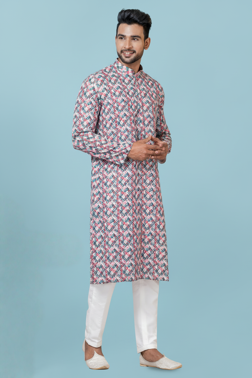 Men’s Multicoloured Printed Kurta | Cotton Fabric | Ethnic & Casual Wear