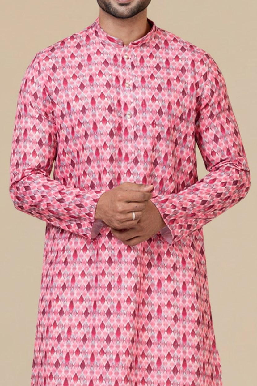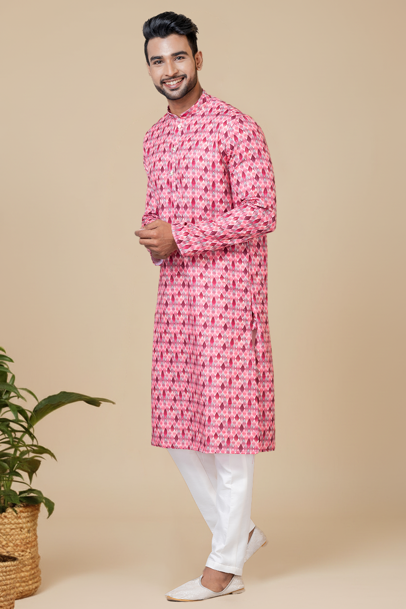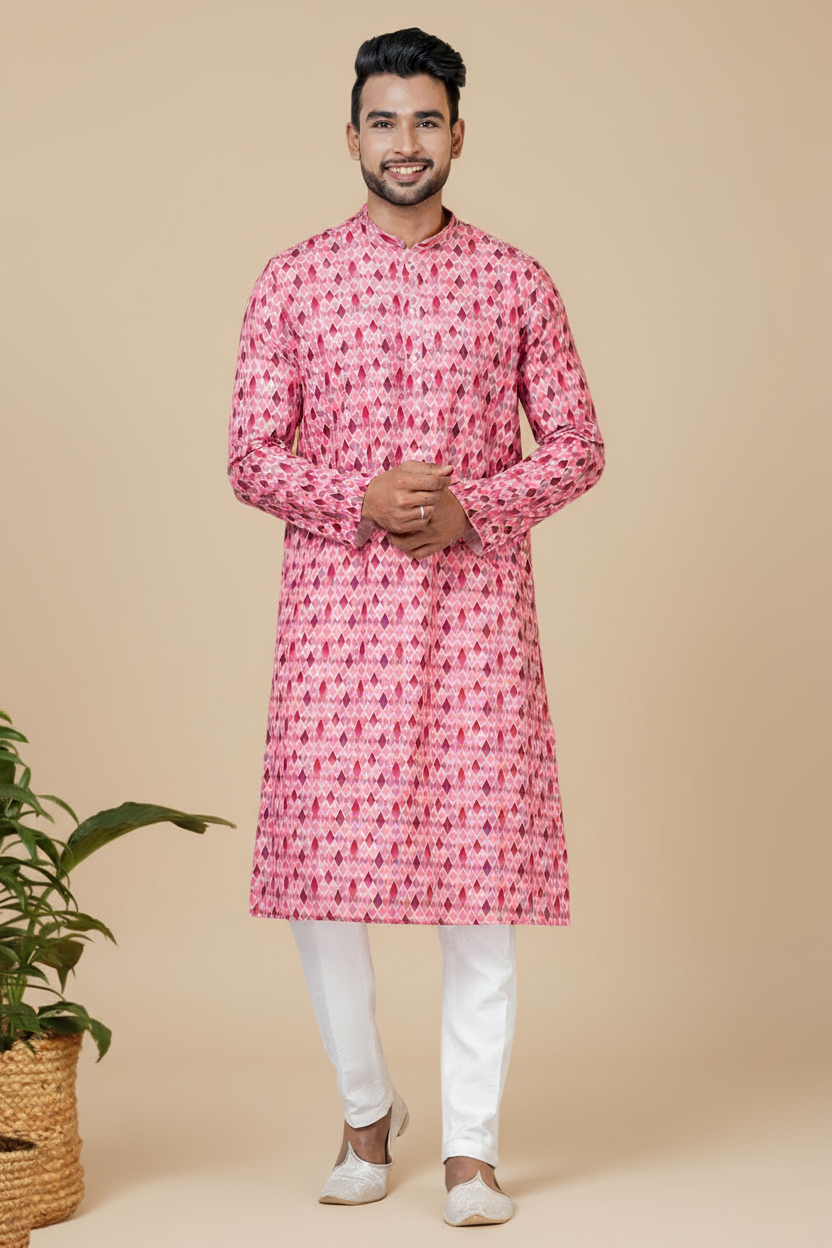 Men’s Pink Printed Kurta | Cotton Fabric | Ethnic & Casual Wear