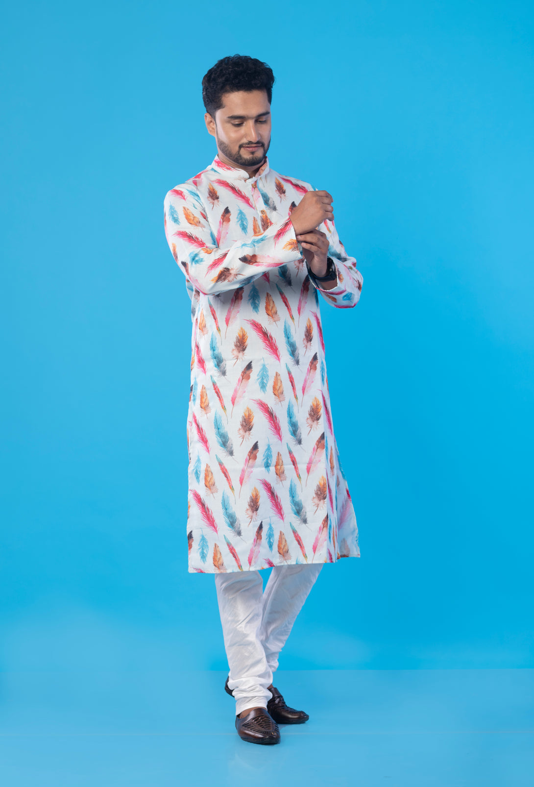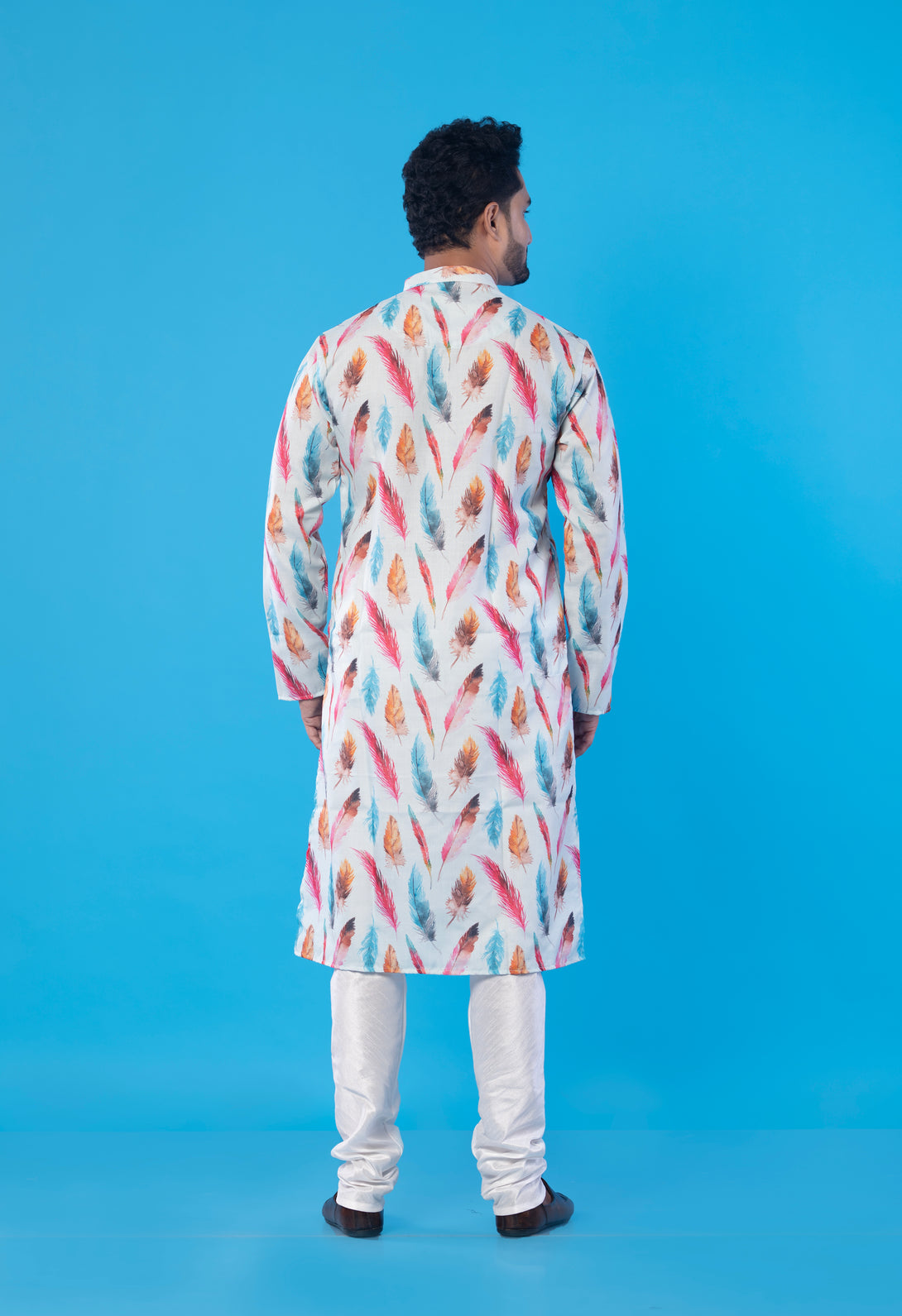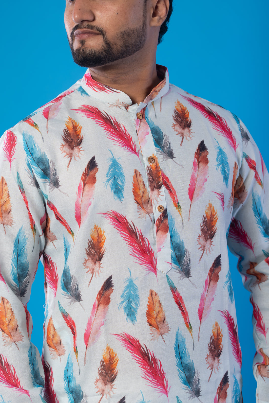 Men’s Feather Printed Multicoloured Kurta | Cotton Fabric | Ethnic & Casual Wear