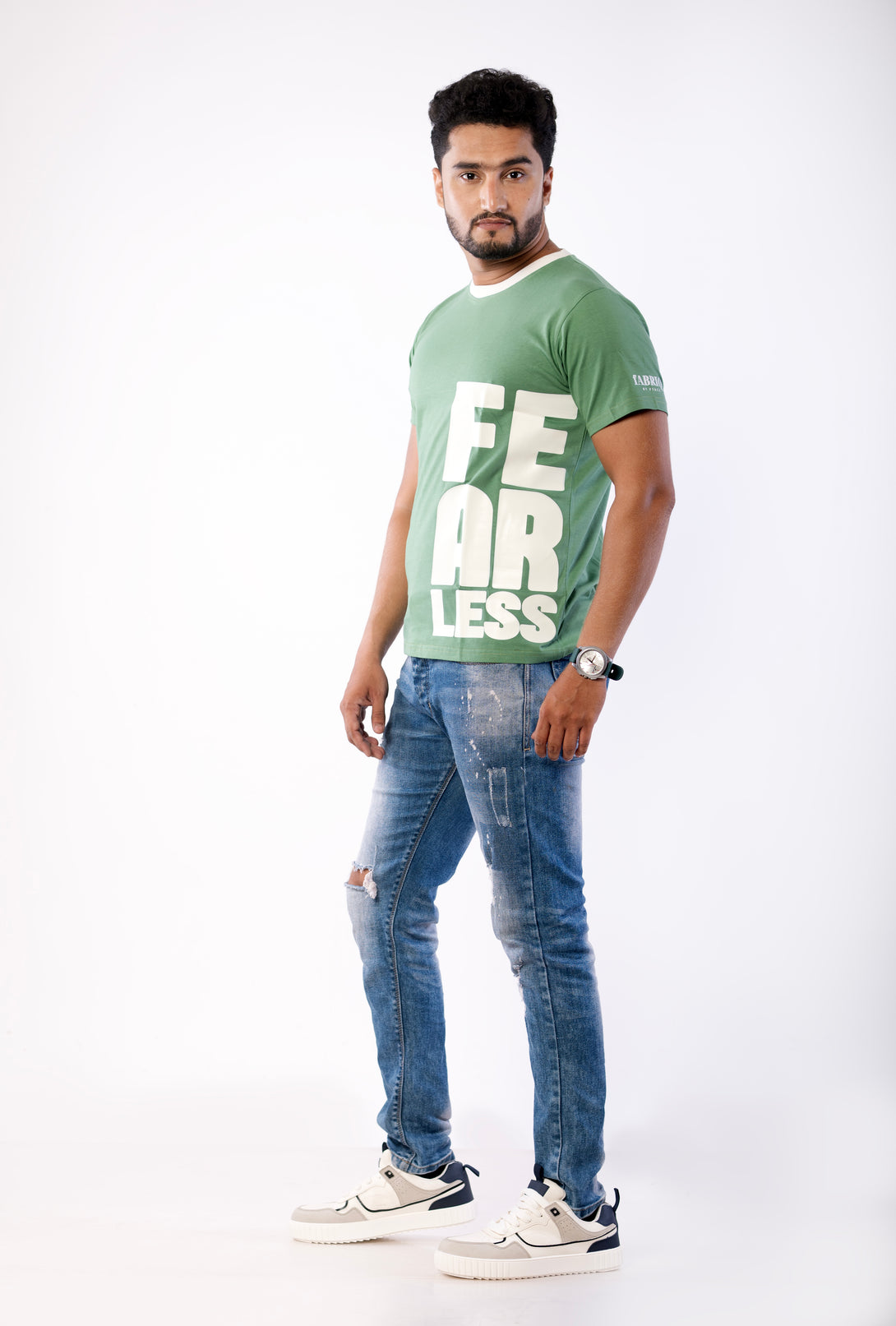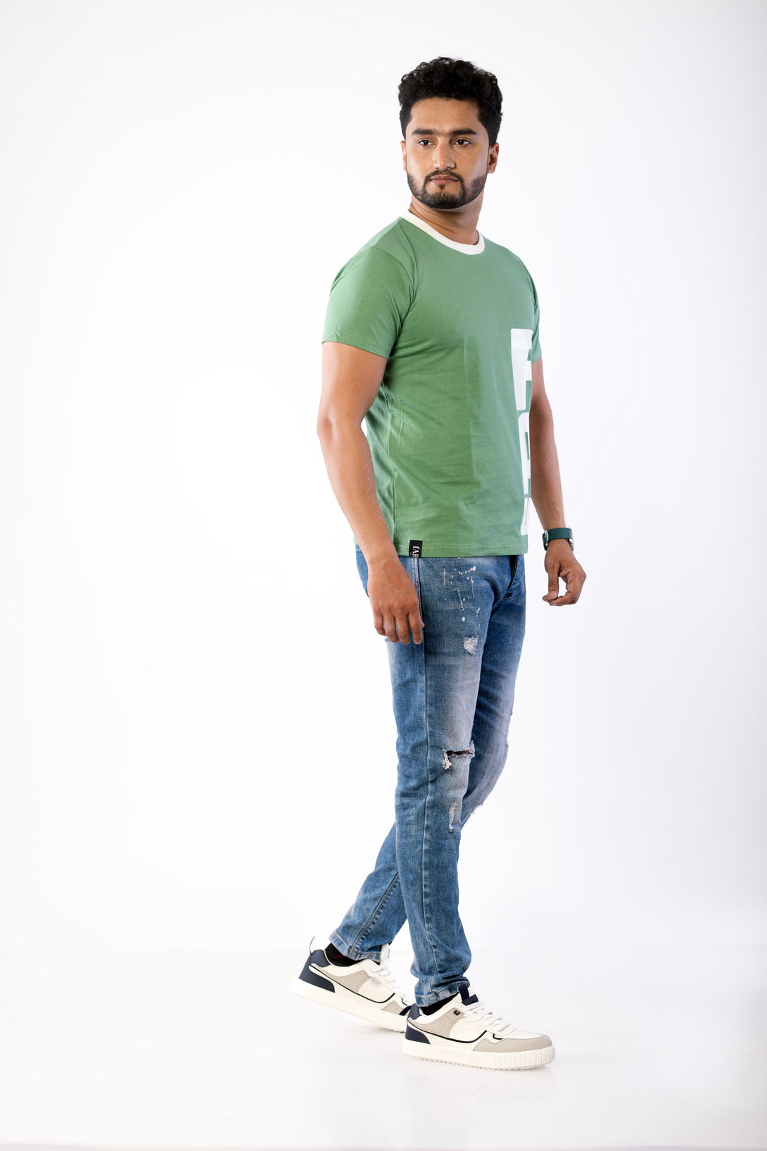 Men's Green Round Neck T-Shirt | Cotton Fabric | Casual and Party Wear
