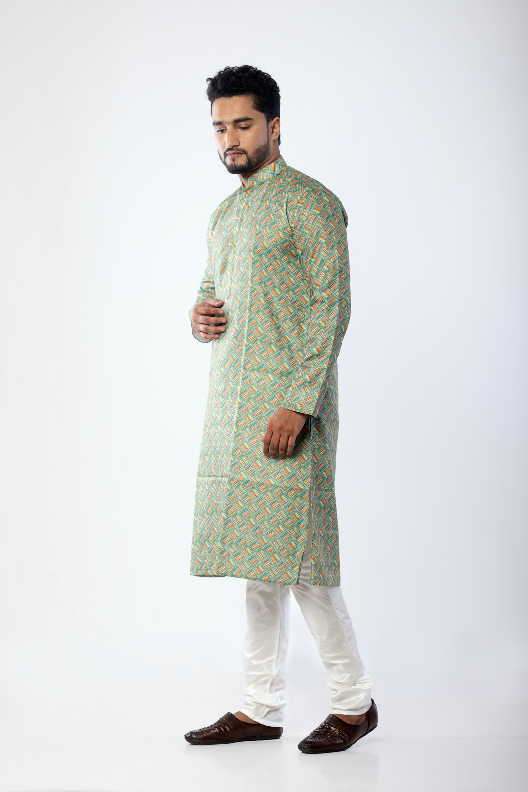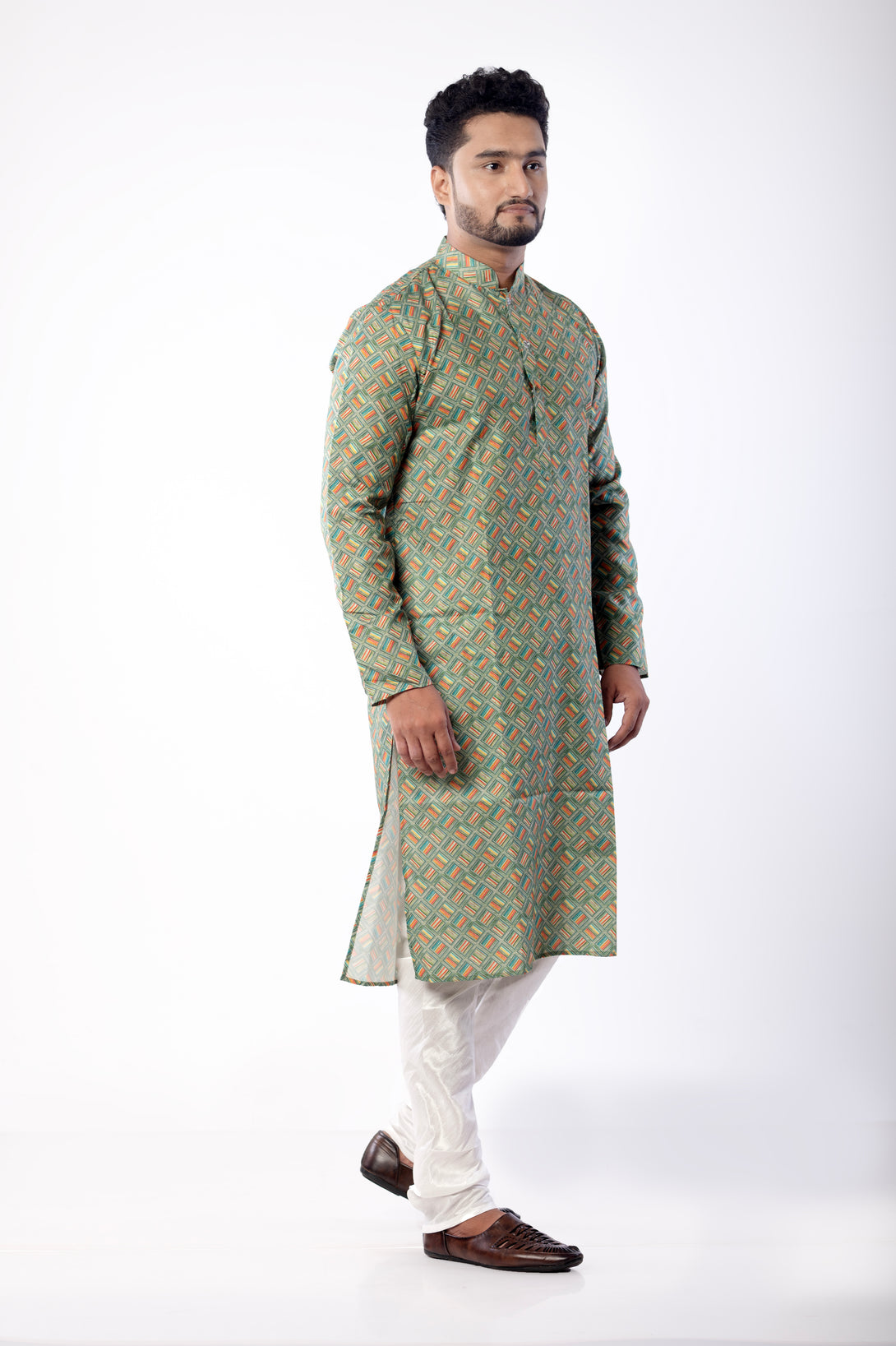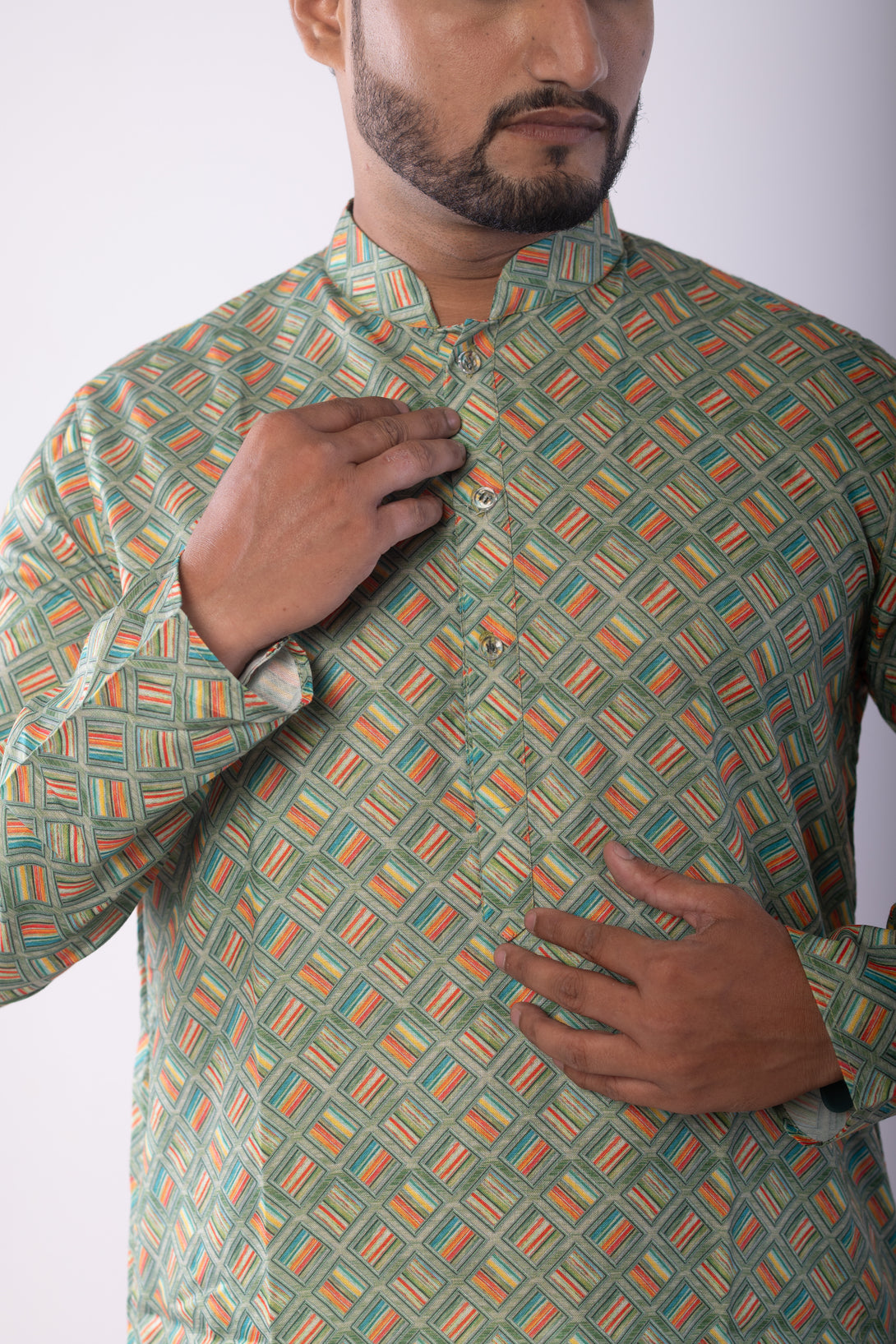 Men's Green Multicolor Printed Kurta | Cotton Fabric | Festive & Party Wear