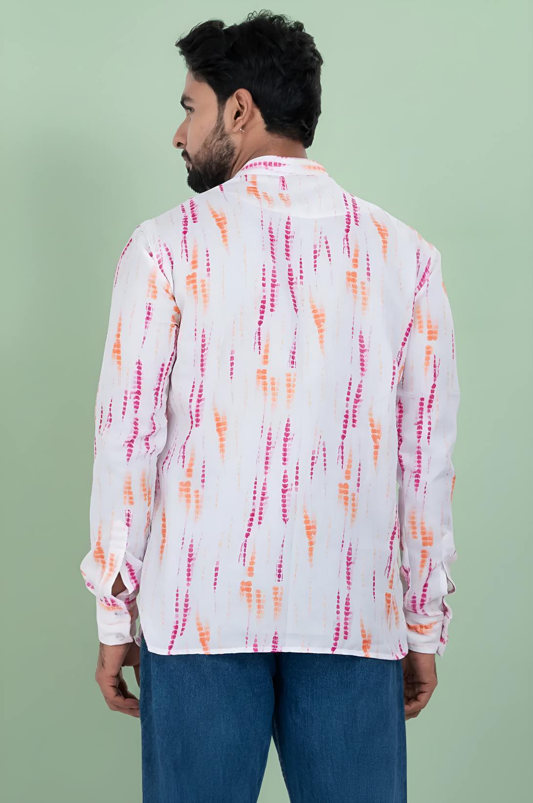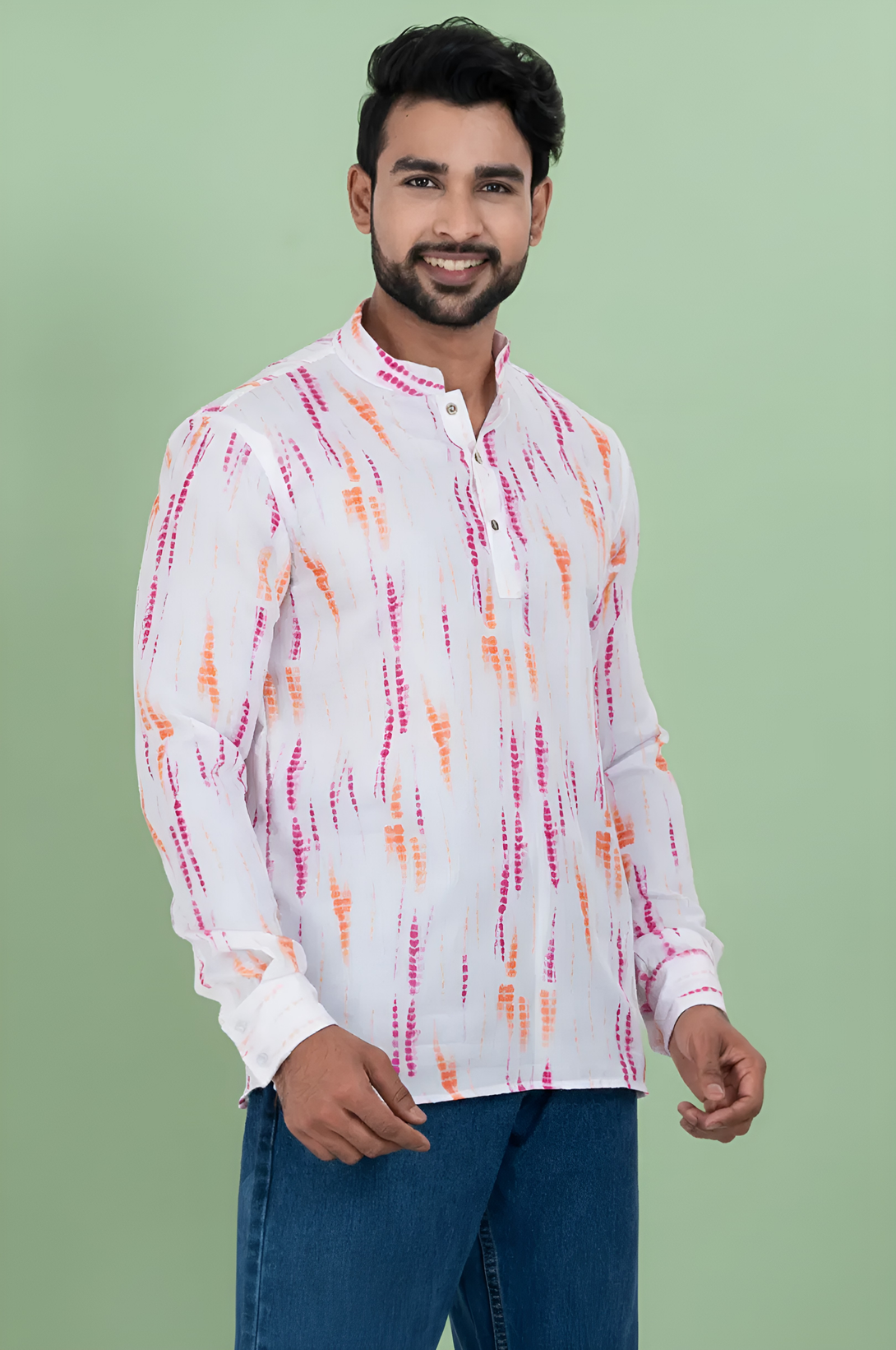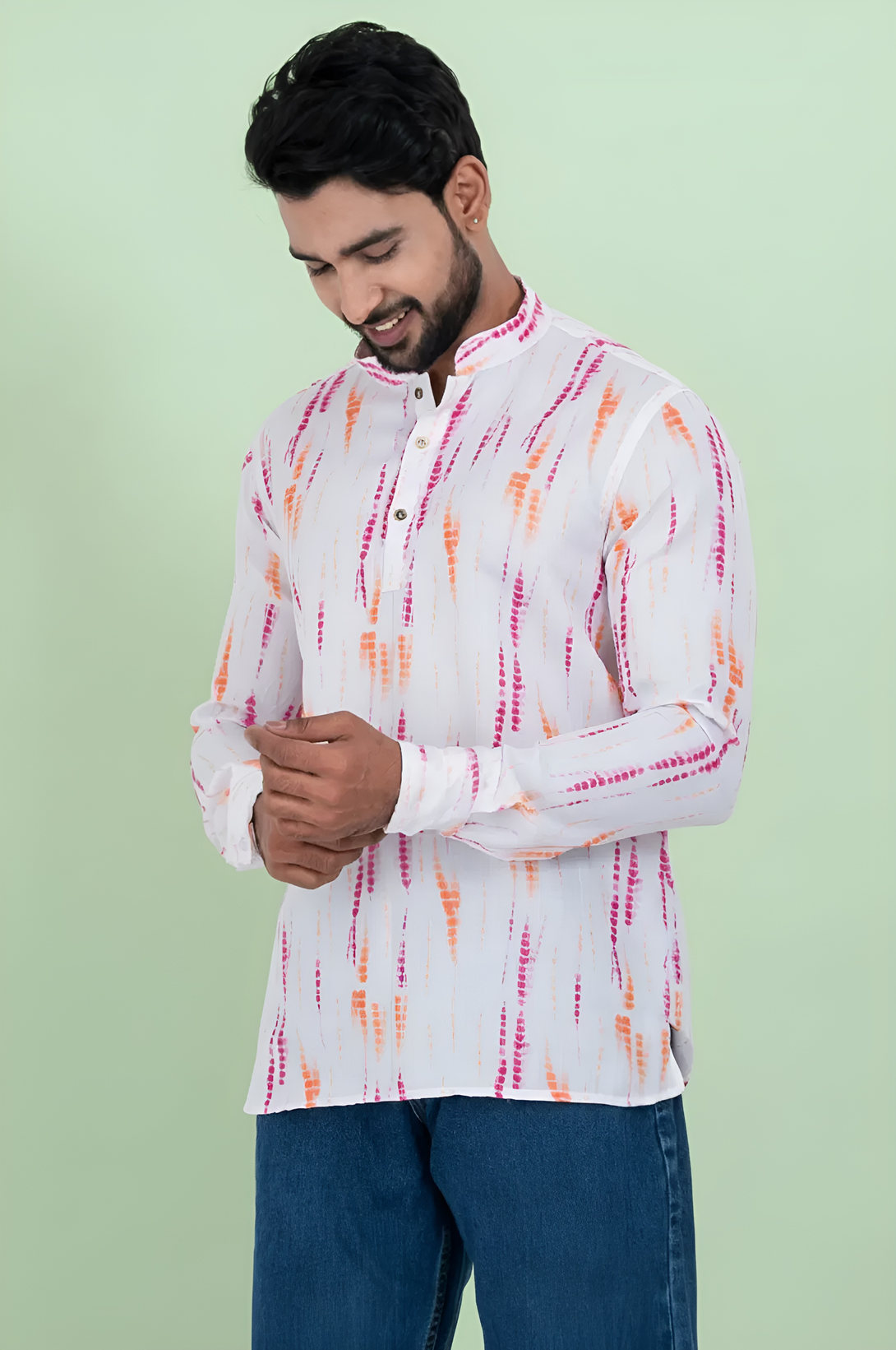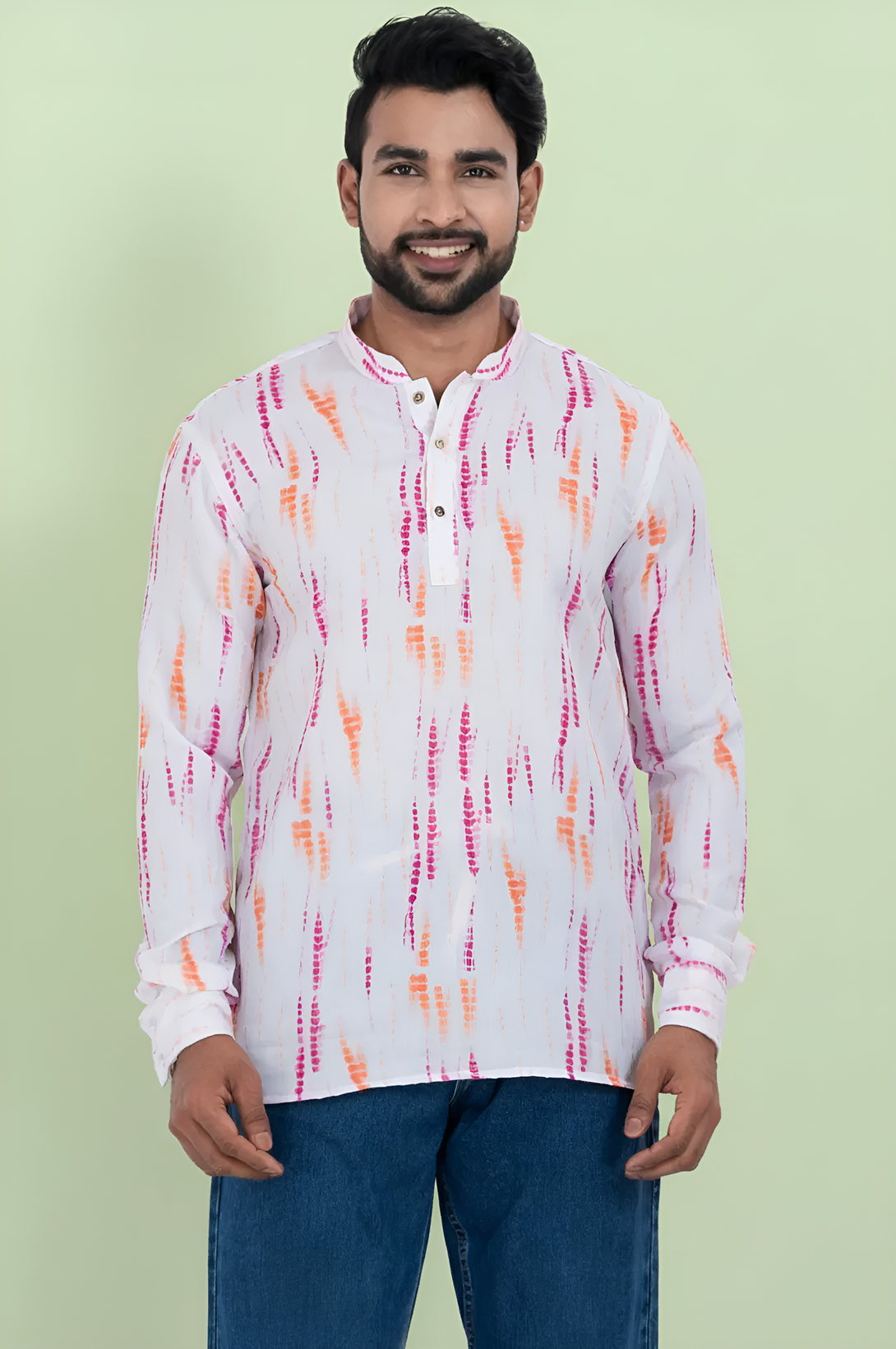 - DESIGN FEATURES: Stylish White Tie-Dye printed short kurta with mandarin collar and full sleeves