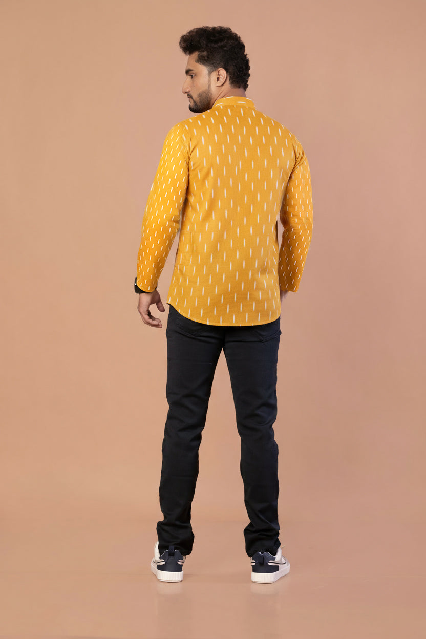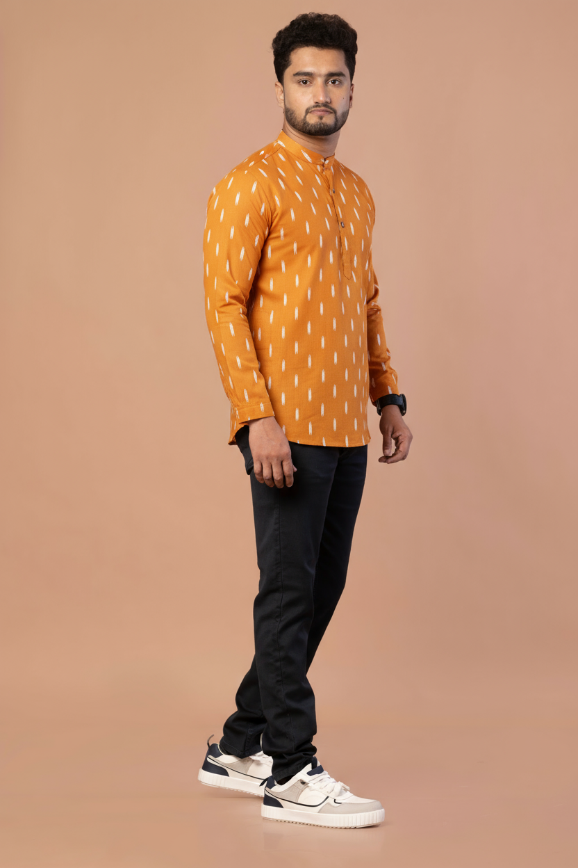 Men's Yellow Printed Short Kurta | Cotton Fabric | Semi Formal & Casual Wear